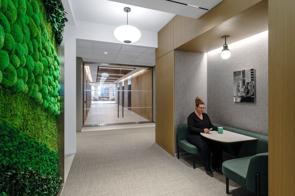 They’re looking for “alonement,” he said, or solitude-friendly spaces to decompress without leaving one’s workplace. “It is the smoke break for the era of people who don’t smoke,” Nabholz said. Demand for such spaces is reshaping workplace design as employers pay greater attention to workplace wellbeing, and what amenities staff need to feel mentally healthy to do their best work, he said.